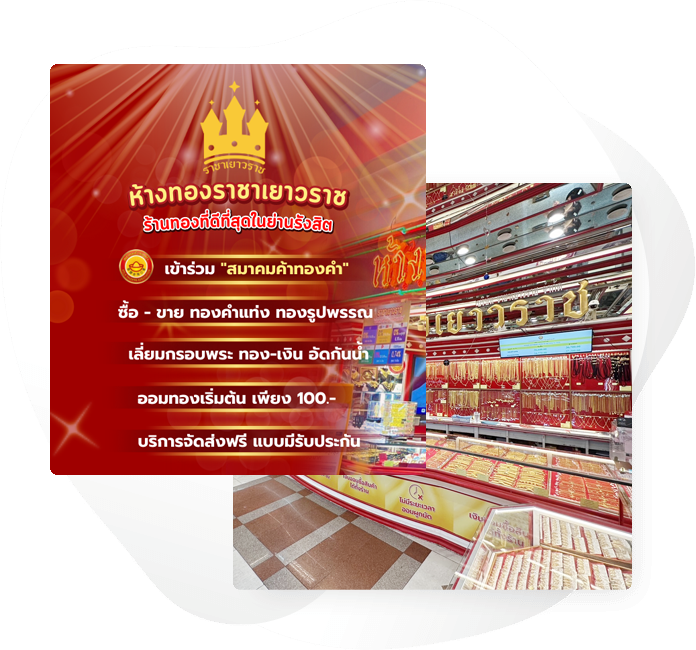เพราะห้างทองราชาเยาวราช ฟิวเจอร์พาร์ครังสิต ดำเนินกิจการมา กว่า 20 ปี ในศูนย์การค้าฟิวเจอร์พาร์ครังสิต ซื้อ-ขาย ทองคำแท่ง ทองรูปพรรณ มาตรฐานเยาวราช ลวดลายทองมากกว่า 1000 ลาย บริการเลี่ยมกรอบพระทอง-เงิน โดยช่างผู้ชำนาญการ ฝีมือปราณีต กันน้ำ 100% รอรับได้เลย จนได้ชื่อว่าเป็น ร้านทองที่ดีที่สุดในย่านรังสิต